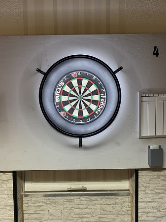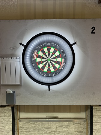 Unsere Anlage besteht aus 4 Boards mit zugehörigem Whiteboard zum Notieren der Scores. Die schattenfreie Beleuchtung wird gewährleistet durch einen LED-Ring, welcher am Board angebracht ist.